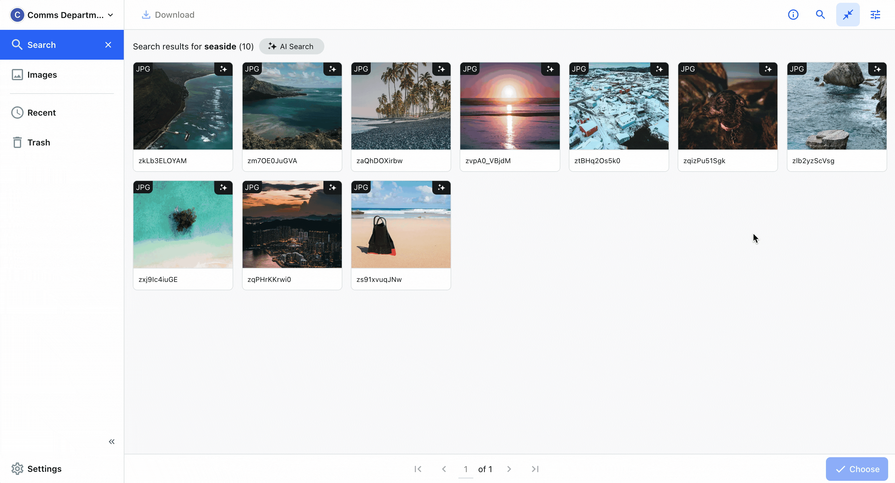 CKBox 2.11.0 introduces semantic search. This extends the existing AI-powered metadata capabilities, makes asset discovery more flexible, and reduces the need for exact keyword matching. Unlike the standard keyword-based search, which matches file names, tags, and descriptions, semantic search understands the meaning and intent behind a query and allows users to describe what they are looking for using natural language. For example, searching for “a sunset over the ocean” can return relevant images even when those terms are not explicitly present in filenames or tags.