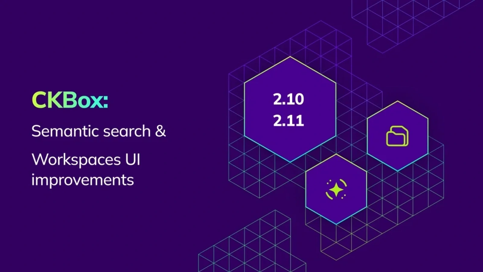 CKBox 2.11.0 introduces semantic search and, together with 2.10.0, expands asset management capabilities directly within search results. Furthermore, 2.10.0 improves workspace management, especially for multi-tenant applications with a large number of workspaces.