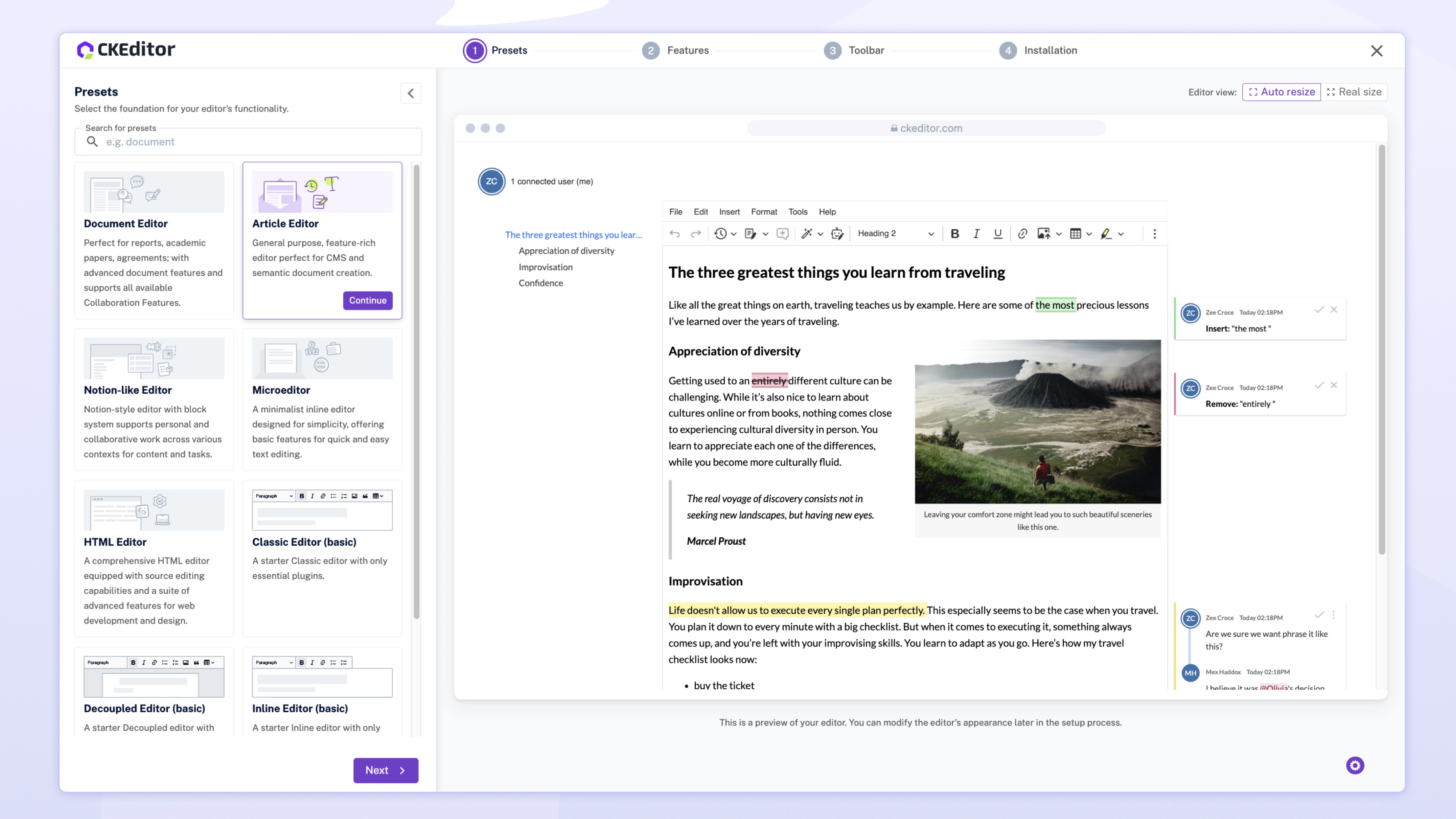 The CKEditor team is excited to announce the release of CKEditor 5 version 42.0.0. This version brings significant improvements to the onboarding experience and installation methods, designed to simplify and enhance the integration process for developers. The update includes new installation methods, an upgraded online builder, and comprehensive documentation updates.