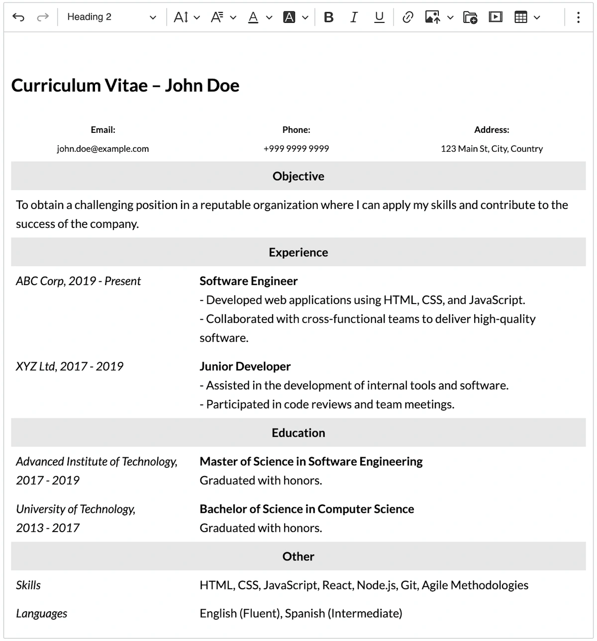 Managing table and cell borders has been made even easier with CKEditor 5 v43.1.0. This enhancement introduces the ability to create tables with no borders. Making it particularly useful for creating better-looking CVs or report templates, where table structuring may help to achieve a proper layout faster.