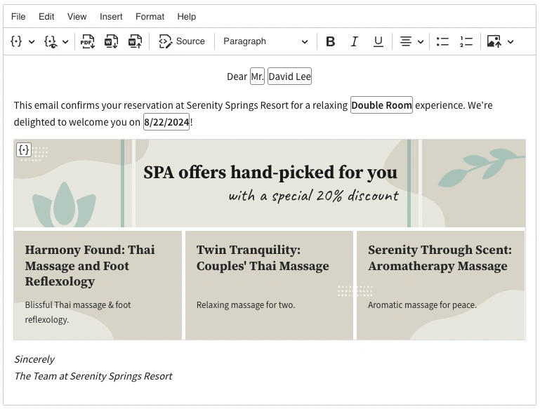Introduced in CKEditor 5 v43.0.0, Merge Fields allows for insertion inline text placeholders which can be dynamically replaced with actual data during document generation. Now with the release of v43.1.0, Merge Fields also allows for block placeholders, further expanding its personalized templating capabilities.