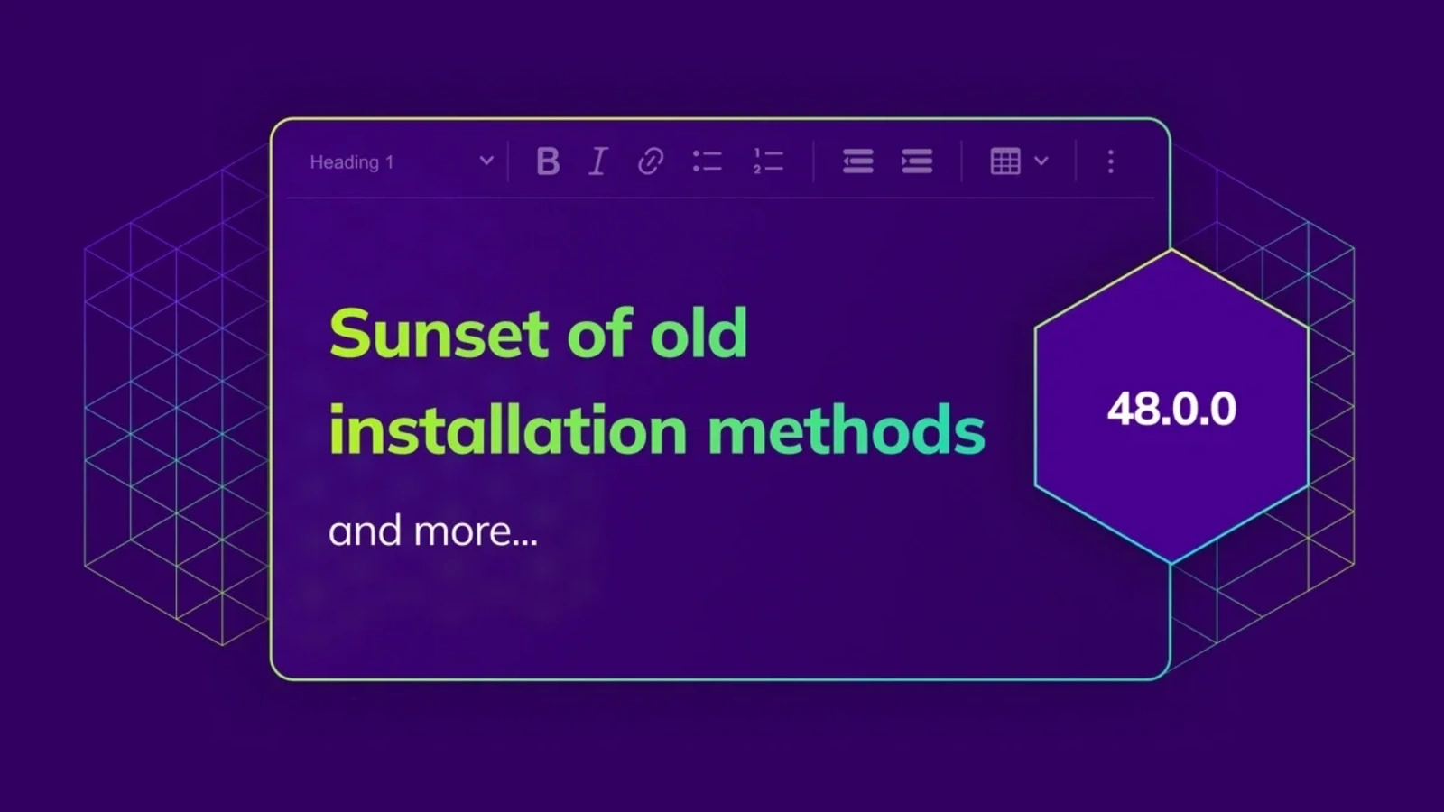 V48.0.0 includes a handful of breaking changes, primarily related to the installation methods sunset and AI configuration updates, while some of these changes also lay the groundwork for upcoming releases.