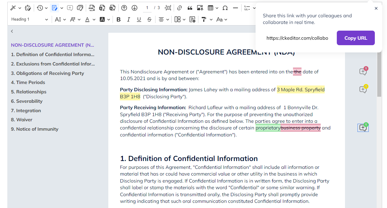 CKEditor 5’s real-time collaboration tools allow multiple users to edit a document simultaneously, making content reviews and revisions smooth. Track changes, leave comments, and manage document versions—all of which are essential for teams working together on large-scale projects. To learn more about real-time collaboration tools, visit the CKEditor Collaboration feature page.