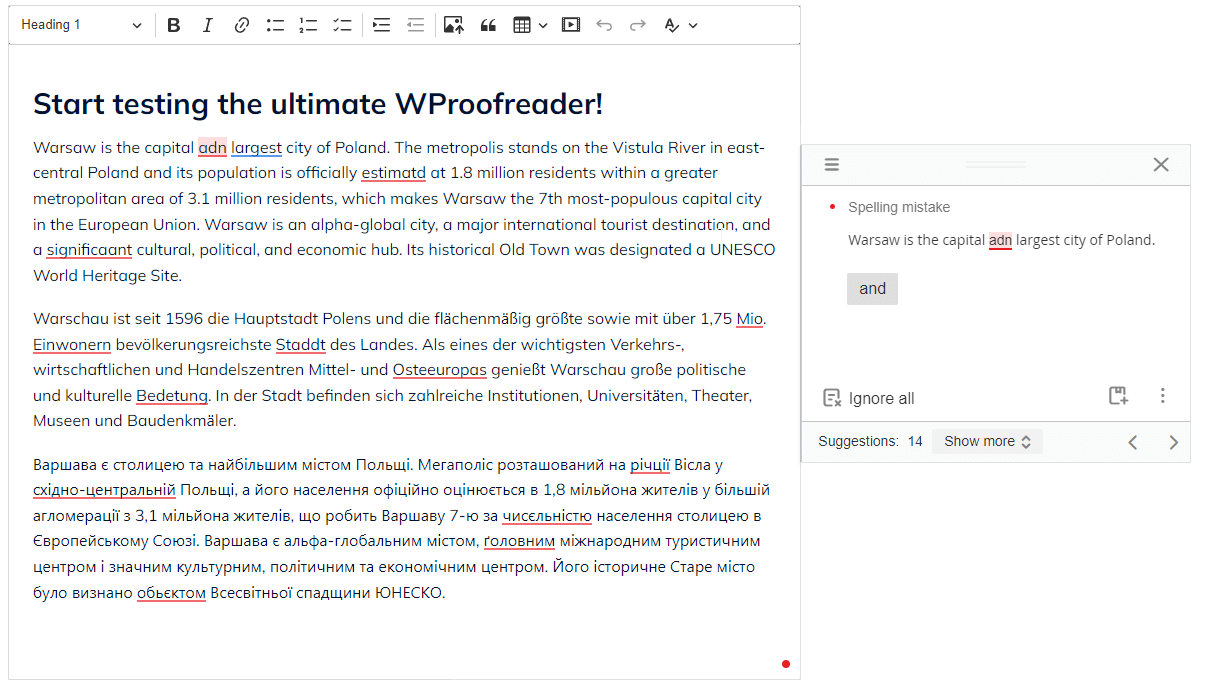 WProofreader is an advanced spell-checking and grammar-checking add-on that integrates directly into CKEditor. This tool helps ensure that your content is error-free and polished before it’s published. WProofreader supports multiple languages and provides real-time suggestions for spelling, grammar, and style improvements. It’s an invaluable tool for maintaining high-quality content standards.