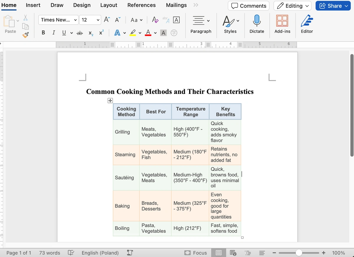 Additionally, the feature supports creating tables with invisible borders, which is particularly useful for structuring content layout, such as in CVs or reports.