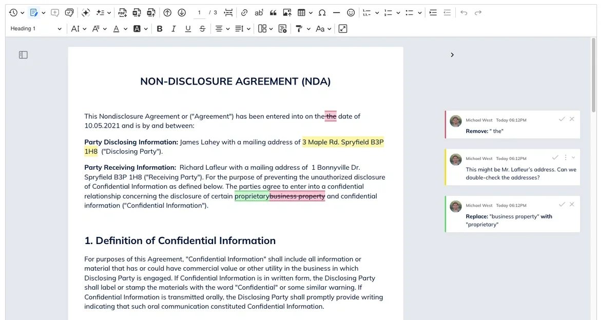 Comments and track changes with mentions.