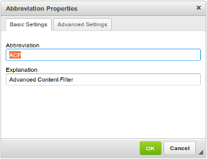 With Advanced Content Filter we can specify which dialog window fields and tabs are enabled and which are not, depending on filtering rules set in the configuration. This can be done by modifying the Explanation field in the dialog window definition (plugins/abbr/dialogs/abbr.js