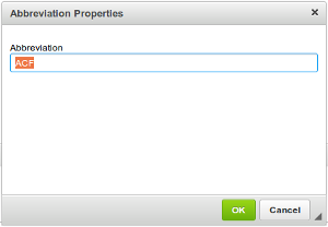 However, in most cases a button just triggers a command — for example the Abbreviation button has a related abbrDialog