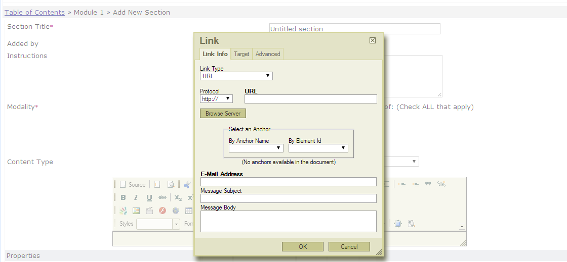 When I try to add anchor link in IE10,the background functionality goes to white color
