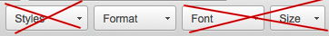 I want to keep the 'Format' dropdown but get rid of 'Styles', 'Font' and 'Size' dropdown menus. This should be pretty simple, but I cannot find how to do this via the docs. (The text editor used to enter this very question does exactly what I want; however, instructions for this elude me.)