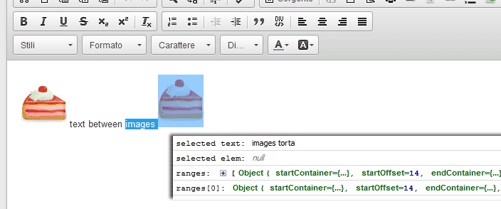 But once both are a selected (image and word), problem appears and I can not retrieve all selected elements. I suppose that I should use getRanges() and getNextNode(), but I do not understand how thay work.
