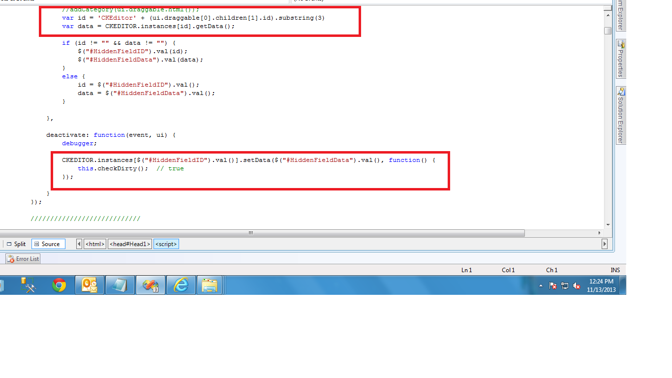 We are using ckEditor version 3.6.2.0 in accordain sortable control inside div. when i moved the accordain below or after after accordain , we have capture the accordain active and deactive event on accordain droppable . on accordain drag we have get ckeditor value and on drop (deactivet) we have again set the ckeditor value. it' working on upto IE 10.0 but not working on crome ,safari ,mozela browsers.