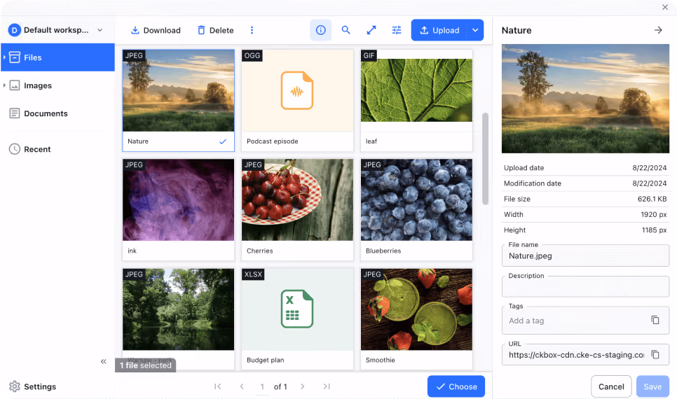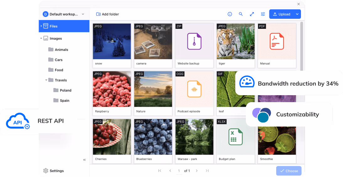 - Choose your storage type - S3, Azure Blob Storage, MySQL, Postgres, local filesystem.