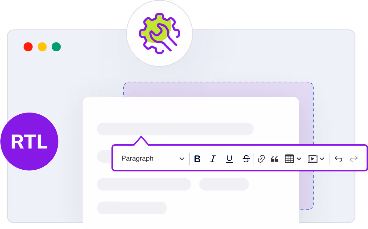- Right-to-left (RTL) languages are natively supported, adjusting the editor interface automatically to ensure an optimal editing experience.