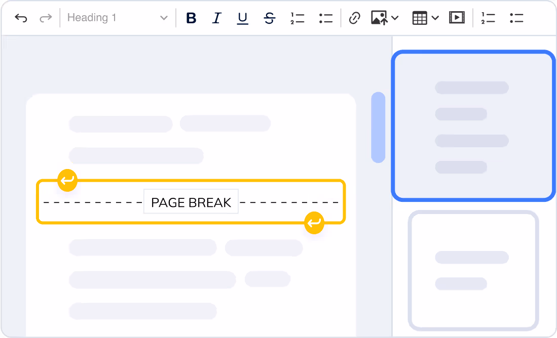 - Pagination: Control where pages begin and end for print or digital distribution by visually marking page beginnings and endings.